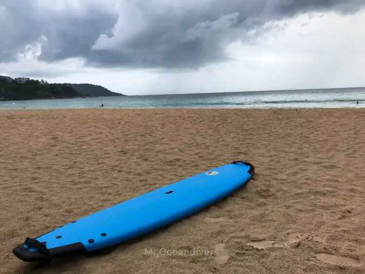 プーケットでダイビングインストラクターが初めてのサーフィンに挑戦