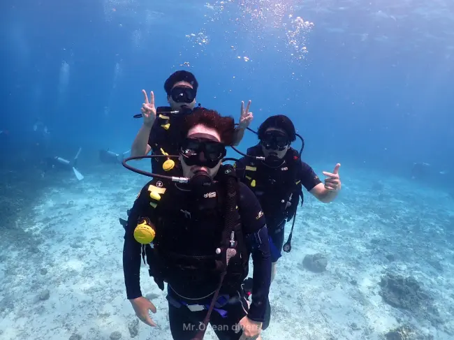今回は、初めてのダイビング体験ということで、最初は少し緊張気味でしたが、海に入るとすぐに慣れて、カラフルな魚たちに囲まれながら笑顔に!短い滞在ながらも、「来てよかった!」と感じていただける、素敵な思い出ダイブとなりました。また機会があればお越しくださいね!ご参加いただきありがとうございました。