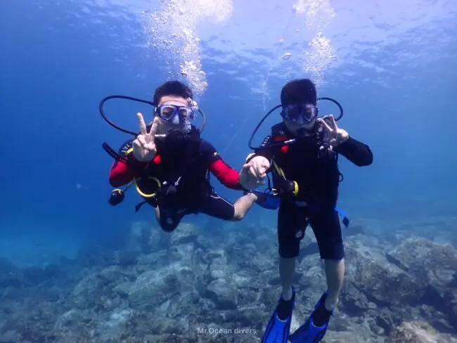2本目は、ダイビングデッキからのジャイアントストライドエントリーもやってみましたが、難なく余裕な感じでこなし水の中へ!とってもキレイなフォームでしたよ。